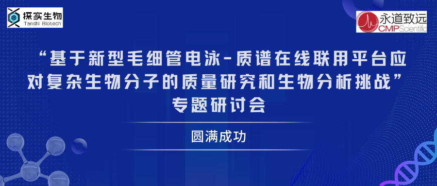 基于新型毛細(xì)管電泳與質(zhì)譜在線聯(lián)用平臺(tái)應(yīng)對(duì)復(fù)雜生物分子的質(zhì)量分析和生物分析挑戰(zhàn)研討會(huì)圓滿成功2023年9月15號(hào)下午,由探實(shí)生物、永道致遠(yuǎn)共同主辦的“基于新型毛細(xì)管電泳與質(zhì)譜在線聯(lián)用平臺(tái)應(yīng)對(duì)復(fù)雜生物分子的質(zhì)量研究和生物分析挑戰(zhàn)”專題研討論會(huì)圓滿落幕。探實(shí)生物總經(jīng)理黃懿博士、高級(jí)技術(shù)總監(jiān)兼CTO謝力琦博士,永道致遠(yuǎn)創(chuàng)始人兼董事長(zhǎng)夏強(qiáng)為博士、項(xiàng)目經(jīng)理劉權(quán)、市場(chǎng)經(jīng)理洪佳瑩,以及藥明、邁晉、奧浦邁等眾多企業(yè)...